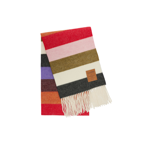 Giv din garderobe et løft med det elegante Ganni Double Face Wool Knit Scarf Multicolour. Dette luksuriøse halstørklæde er lavet af 100% uld, som både varmer og holder i mange sæsoner. De friske, flerfarvede toner kombineret med de markante frynser skaber et moderne udtryk, der passer perfekt til både efterår og forår. Det indvævede GANNI-logo giver designet et eksklusivt og genkendeligt finish. Et ideelt valg til den stilbevidste kvinde, der ønsker at forene funktion og mode.