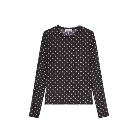 Denne GANNI bluse kombinerer et enkelt snit med et markant, moderigtigt udtryk. Den har en rund halsudskæring og lange ærmer, som giver et klassisk og alsidigt look – perfekt til både hverdagsbrug og mere polerede outfits.