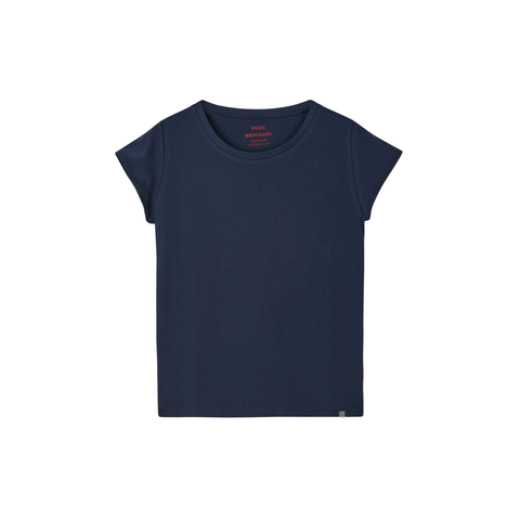 Denne Organic Jersey Teasy Tee fra Mads Nørgaard i farven Parisian Night er en blød og let T‑shirt fremstillet i 100 % økologisk bomuld, som sikrer et behageligt og åndbart materiale. T‑shirten har en tætsiddende pasform med en klassisk rund hals og meget korte ærmer, der næsten minder om et viftedesign – et subtilt, feminint touch, der løfter det enkle design. Den rene silhuet og den mørke nuance gør denne tee til et elegant fundament i garderoben, som nemt kan styles med alt fra jeans til nederdele og bruges sæson efter sæson.