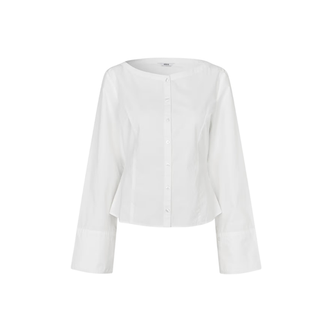 Long-sleeved shirt with a regular fit and boat neckline. Full-length button closure at the front and wide cuffs. Main material made of cotton.