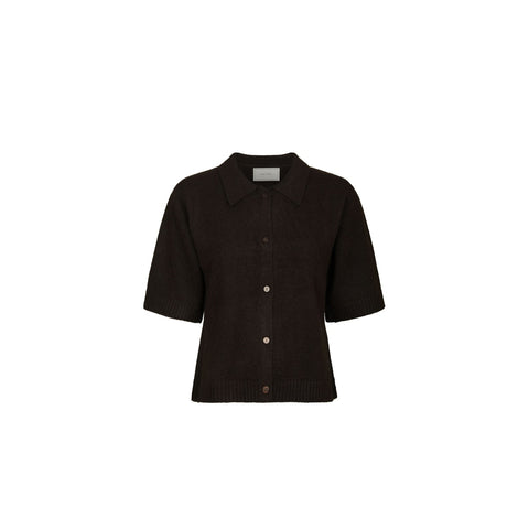 This knitted blouse combines an elegant design with comfort thanks to its short sleeves and soft material. It is made with a blend of 47% polyester, 40% acrylic, 10% wool and 3% elastane, which ensures a good fit and a pleasant feeling against the skin. The blouse is aimed at adult women and is perfect for those who want a stylish and versatile garment that is knitted with care. The dark brown color gives a warm and deep shade that can be easily combined with different outfits.