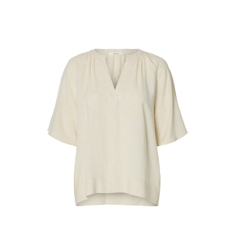 Selected Women Viva 2/4 V-Neck Linen Blend Top