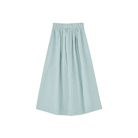 Oplev letheden og den afslappede elegance med Dagny skirt i White/Aqua Stripe fra Skall Studio – en nederdel der forener tidløst design med skandinavisk minimalisme. Nederdelen er lavet i 100 % økologisk bomuld med en fin, sommerlig stribe i hvide og aqua nuancer, der tilfører et friskt, sart udtryk til enhver garderobe. Den elastiske talje sikrer en behagelig og fleksibel pasform, mens det lette, voluminøse snit skaber en smuk silhuet med bevægelse og flow, som føles helt naturligt både til hverdag og ved mere særlige lejligheder. Sidelommerne giver et praktisk touch og understreger det afslappede, funktionelle design, som gør denne nederdel så let at style – bær den med en enkel top og sandaler til varme dage, eller sæt den sammen med en strik og sneakers for en cool, casual look. Dagny skirt er fremstillet med fokus på kvalitet og bæredygtighed gennem brug af GOTS-certificeret bomuld, der både føles blødt mod huden og tager ansvar for miljøet, så du kan føle dig godt tilpas i både stil og samvittighed.