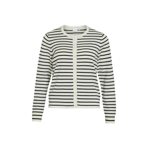 Stylish striped cardigan in white and black, designed with a classic O-neck and long sleeves. It has a button closure at the front and a standard fit that ensures a comfortable fit. A timeless and versatile cardigan, perfect for both work and casual everyday looks.