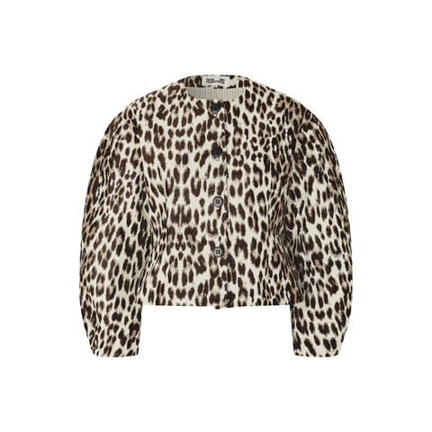 Bonni-jakken er fremstillet i en eksklusiv bomulds-jacquardblanding med et markant leopardmønster, der tilfører kant og personlighed til garderoben. Jakken er foret for ekstra komfort og har en afslappet pasform med en figursyet talje, som skaber en flot og balanceret silhuet. Designet fuldendes af lavtsiddende skuldre og brede, buede ærmer, der giver et moderne og karakterfuldt udtryk. Jakken lukkes med knapper foran og kan styles både til jeans, kjoler eller skræddersyede bukser for et stilfuldt statement-look.