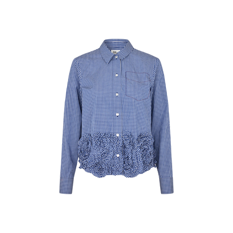 Das Mariel-Hemd ist aus knitterfreiem Bio-Baumwollpopeline gefertigt und bietet dadurch ein leichtes und angenehmes Tragegefühl. Es hat eine lockere Passform, die schön fällt und sich angenehm anfühlt. Der klassische Kragen und die Knopfleiste sorgen für einen zeitlosen Look. Die einzigartige, rosettenförmige Rüschenborte am Saum verleiht dem Hemd eine dekorative und feminine Note, während eine dezente Ziertasche mit Ziernähten das Design abrundet. Ein vielseitiges Hemd, das sich mühelos zu Jeans, Rock oder Anzughose kombinieren lässt.