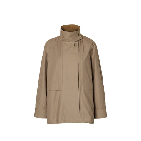 Diese Jacke mit hohem Kragen und langen Raglanärmeln mit Knopfmanschetten wirkt elegant und stilvoll. Der verdeckte Knopfverschluss unterstreicht das klare Design, während die praktischen Vordertaschen für zusätzlichen Stauraum sorgen. Das weiche Baumwollfutter garantiert ein angenehmes und atmungsaktives Tragegefühl den ganzen Tag. Mit Fokus auf Nachhaltigkeit besteht die Jacke zu mindestens 50 % aus Bio-Baumwolle und ist somit eine umweltfreundliche Wahl. Sie eignet sich perfekt für formelle Anlässe im Frühling und vereint Qualität mit einem klassischen, zeitlosen Look.